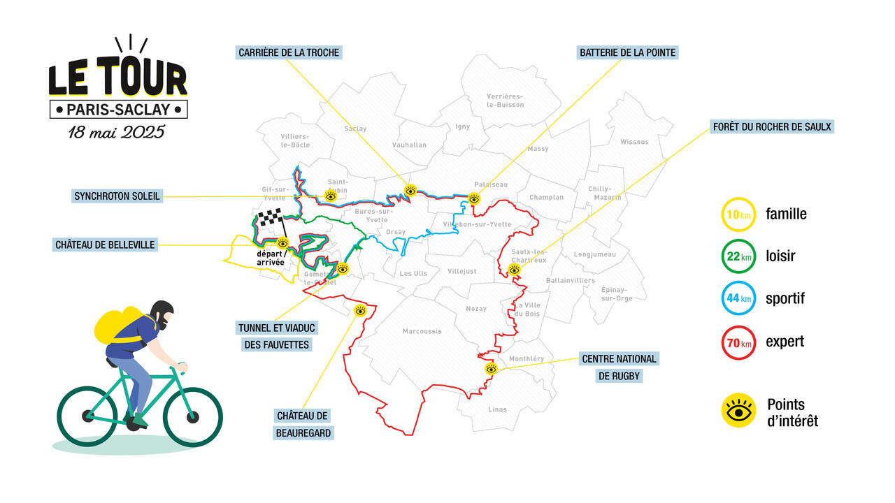 Que vous soyez sportifs confirmés ou simple pratiquants, amateurs de balades en famille ou entre amis, vous trouverez de quoi satisfaire vos envies avec, au choix, quatre boucles de 10, 22, 44 et 70 km qui traversent le territoire de Paris-Saclay.