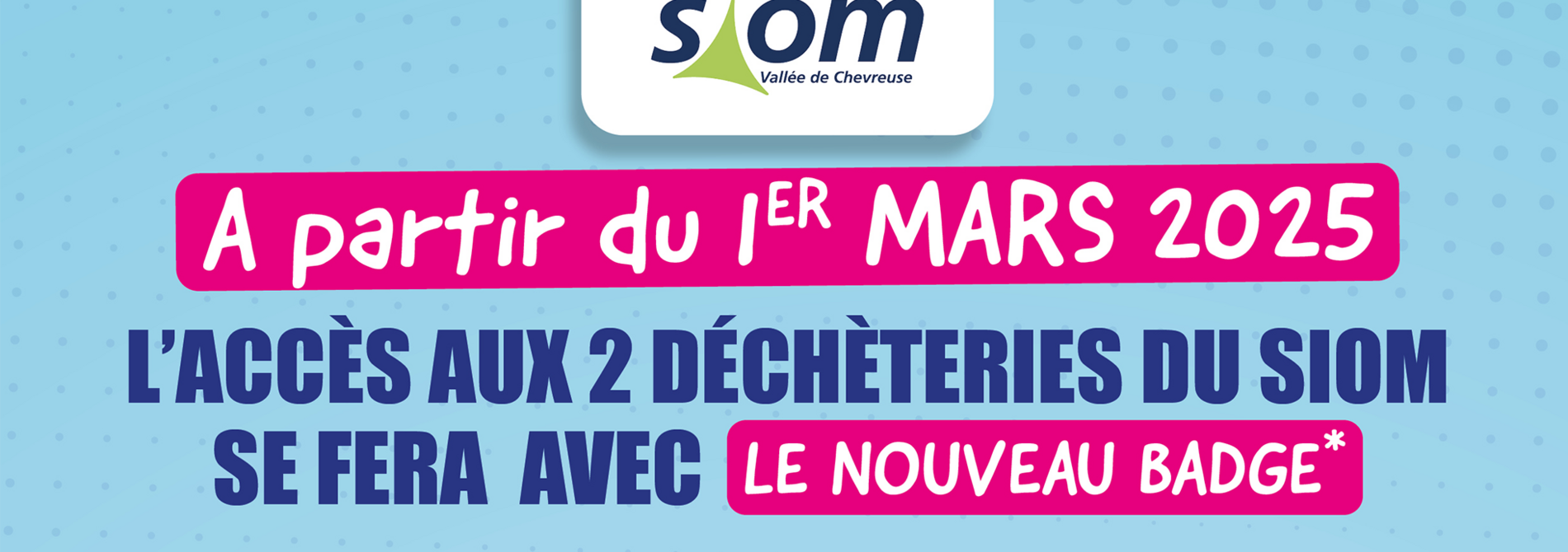 À compter du 1er mars, les anciens badges ne seront plus fonctionnels. Pour assurer la continuité de l’accès, il est impératif de générer un badge dématérialisé ou d’échanger votre badge en déchèterie avant cette date.
