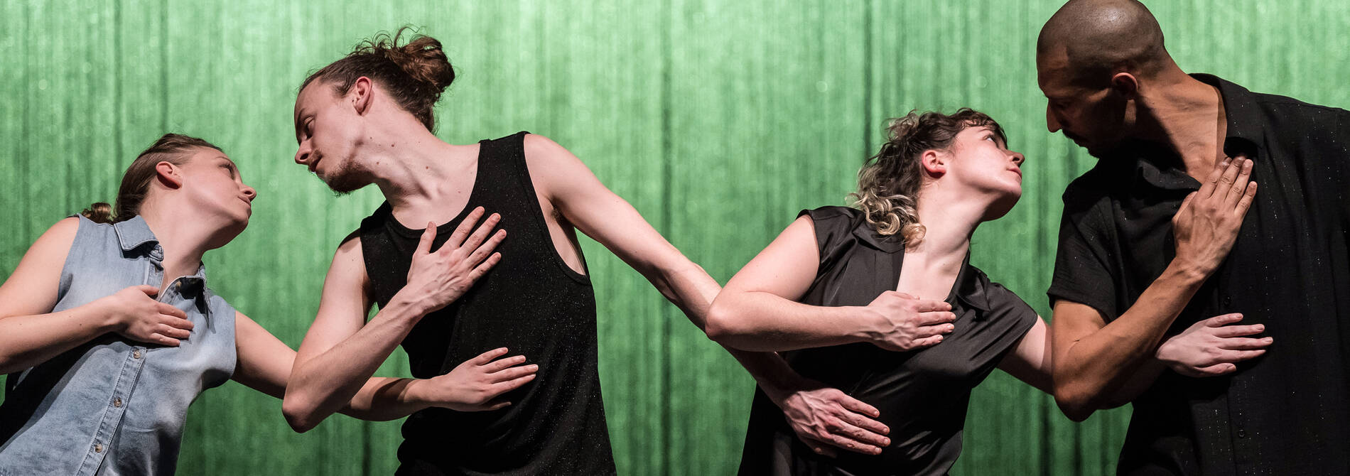 La joie d’être amoureux, les souvenirs des premiers amours, la romance, les questionnements de la découverte, le tourbillon des sentiments et de la construction de soi, l’acceptation de soi… mais aussi le partage, l’amour et l’attention que l’on peut porter aux autres dans d’autres contextes, l’importance et la valeur des différences, qu’elles soient sociales et culturelles… et évoquer le fléau du harcèlement scolaire si présent. Des plumes et des paillettes à de simples présences dansées, du play-back à la chansonnette, d’amour explore autant de territoires chorégraphiques que de chansons proposées, glissant de partitions énergiques et enlevées à d’autres plus sensibles et poétiques, tout comme l’amour et ses multiples chemins.