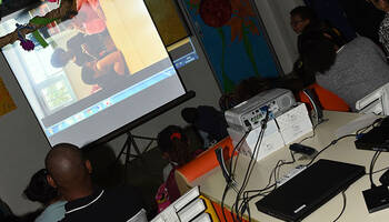 Dans le cadre du label 'Ville Internet', l'ALMO de la Chataigneraie a organisé le 17 octobre 2018 une séance d'information sur le numérique, l'informatique et les dangers d'internet. Parents, enfants et animateurs et la Direction des systèmes d'information de la ville étaient présents.