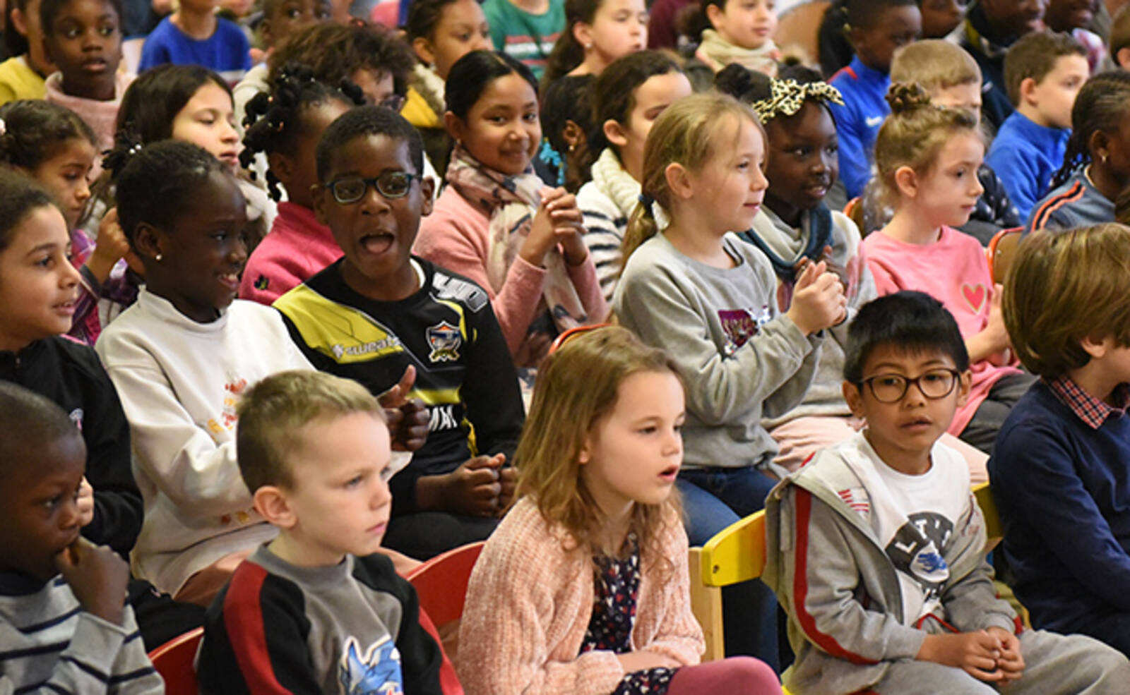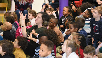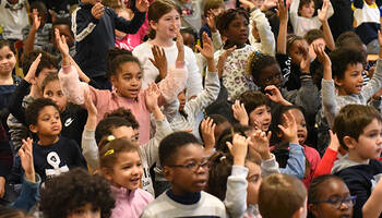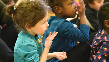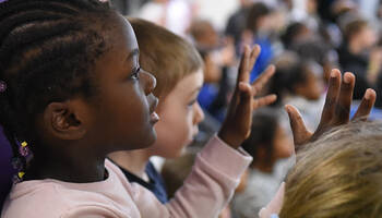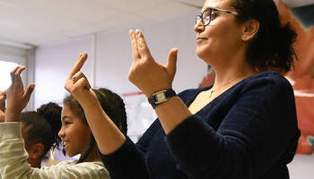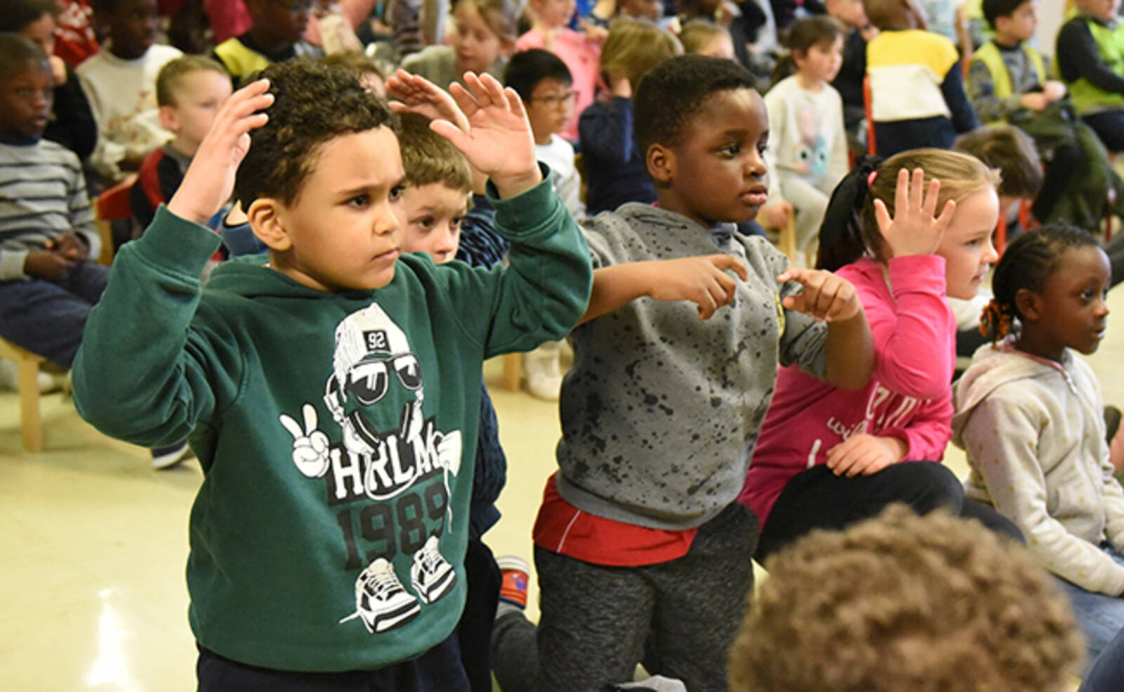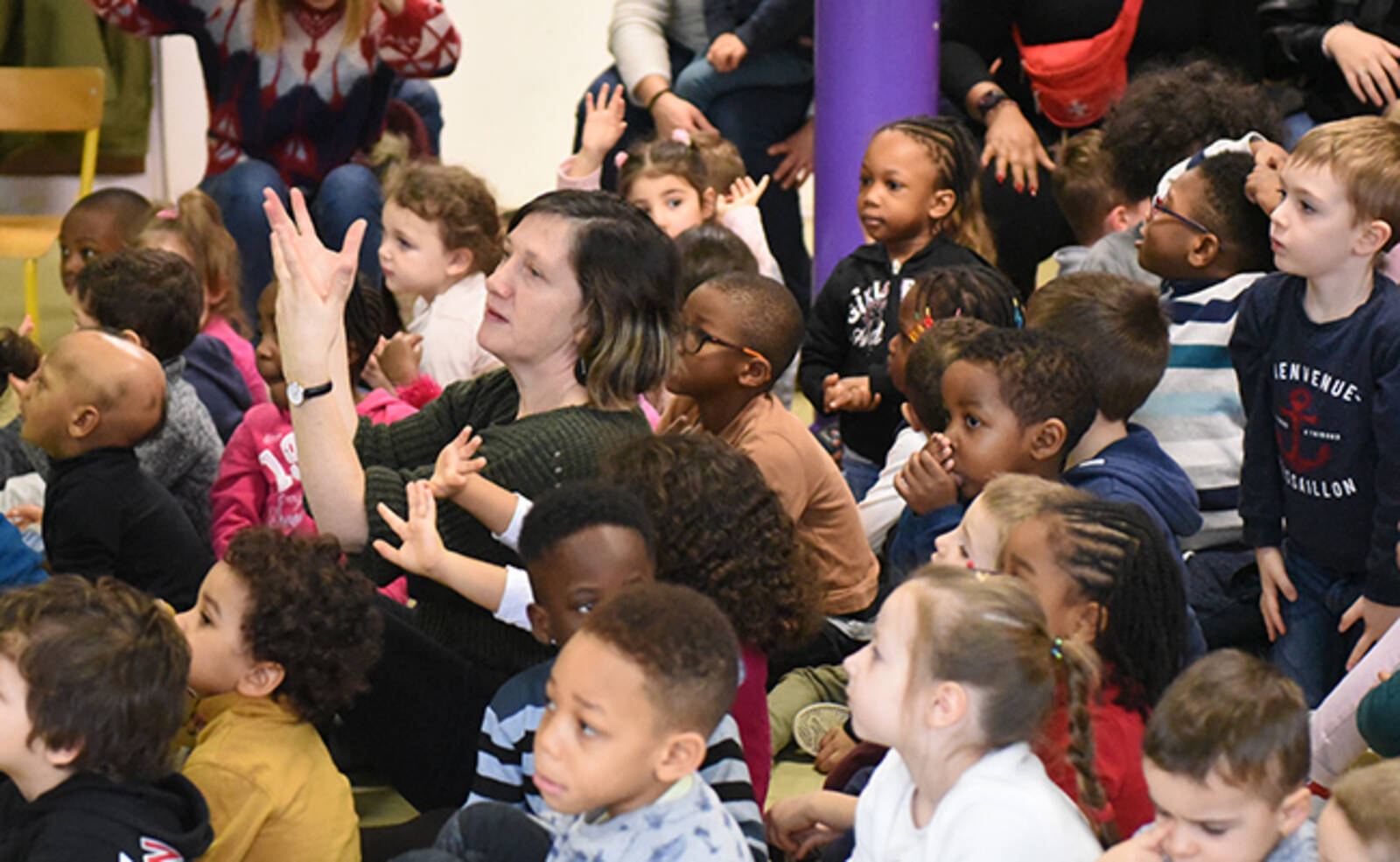 Ce mercredi 5 février, une action de sensibilisation au handicap auprès des enfants des accueils de loisirs maternels et élémentaires des Ulis a eu lieu dans les locaux de l'école de la Dimancherie. Par le biais d'un spectacle chantant et dansant, les animateurs ont appris aux enfants certaines notions de langue des signes.