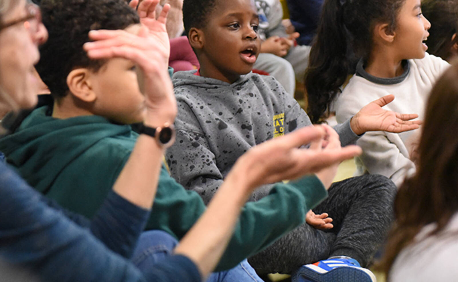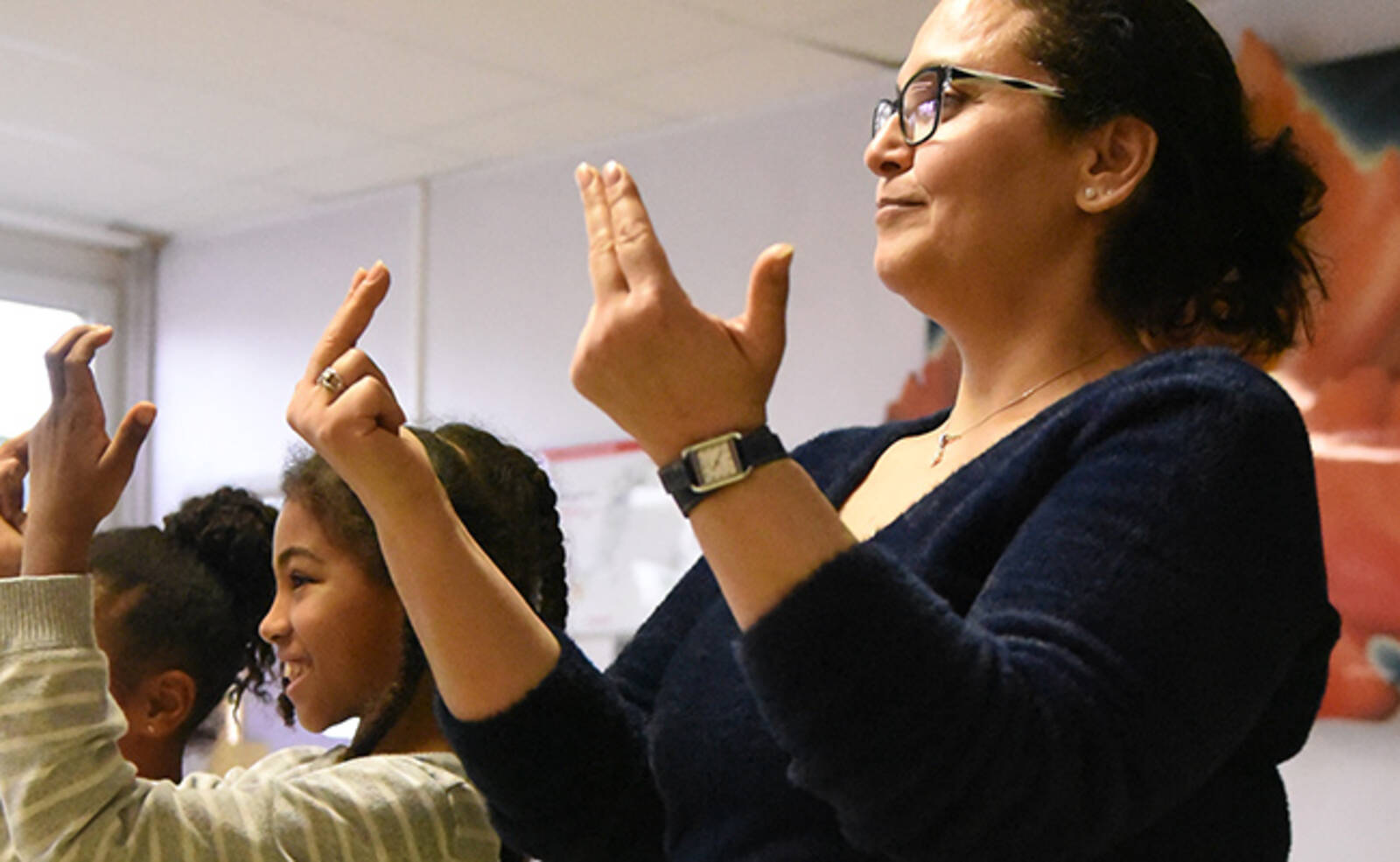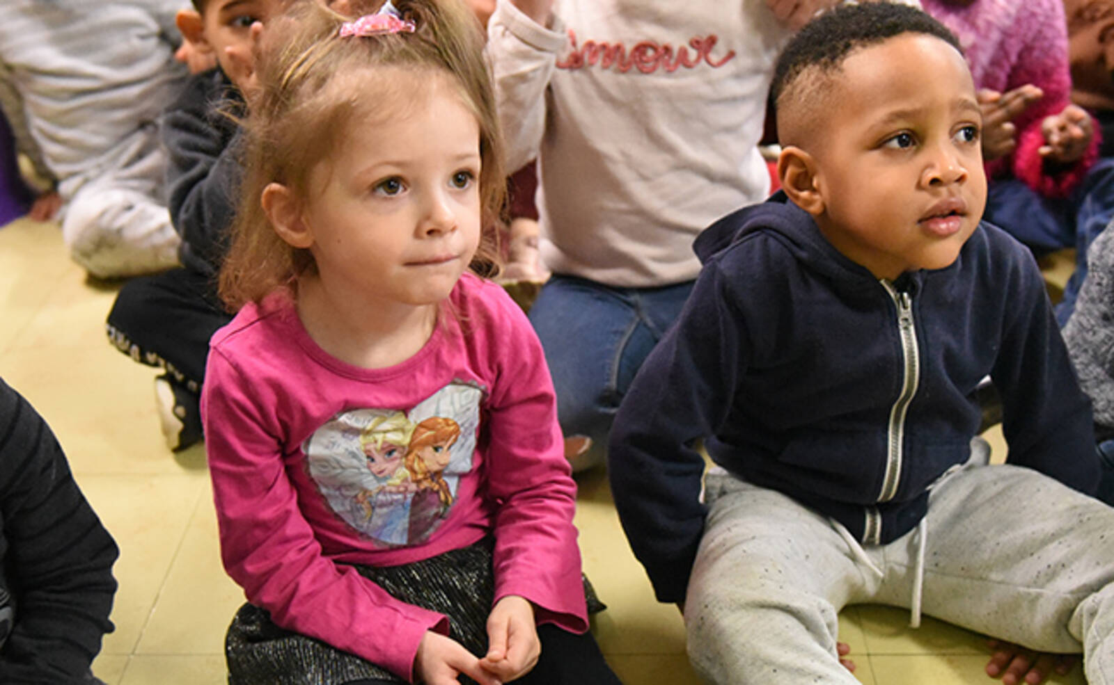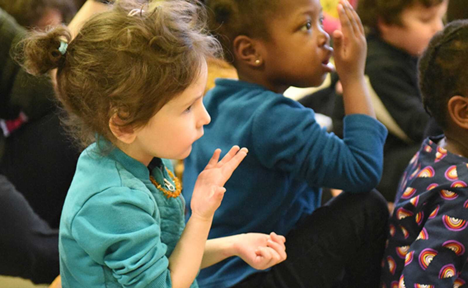 Ce mercredi 5 février, une action de sensibilisation au handicap auprès des enfants des accueils de loisirs maternels et élémentaires des Ulis a eu lieu dans les locaux de l'école de la Dimancherie. Par le biais d'un spectacle chantant et dansant, les animateurs ont appris aux enfants certaines notions de langue des signes.
