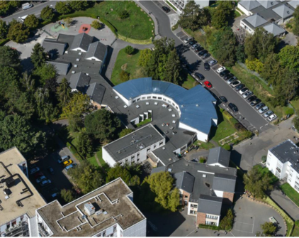 Le Groupe scolaire des Millepertuis, construit entre 1976 et 1977 et imaginé par Michel Hubert et Michel Picard.